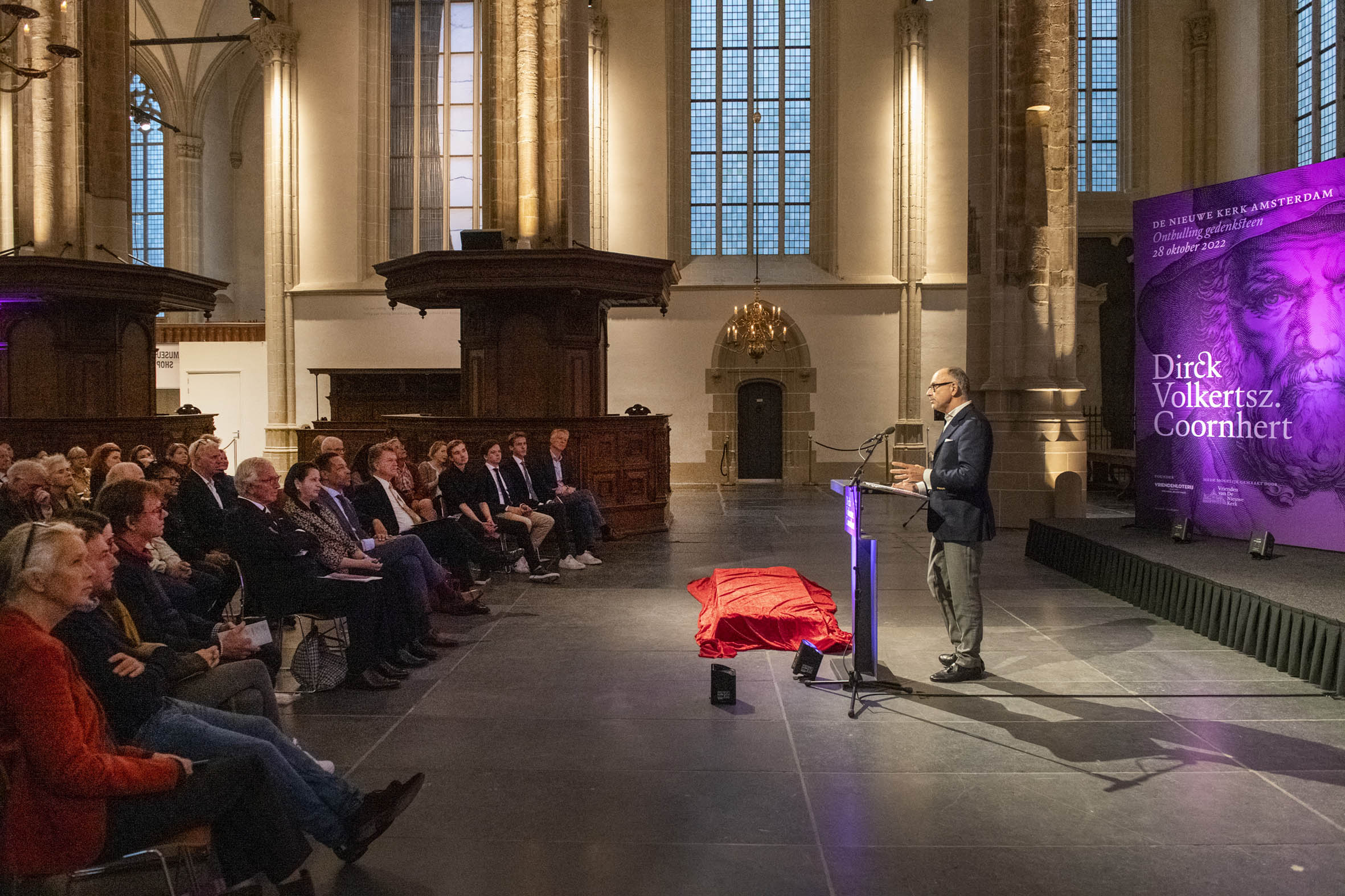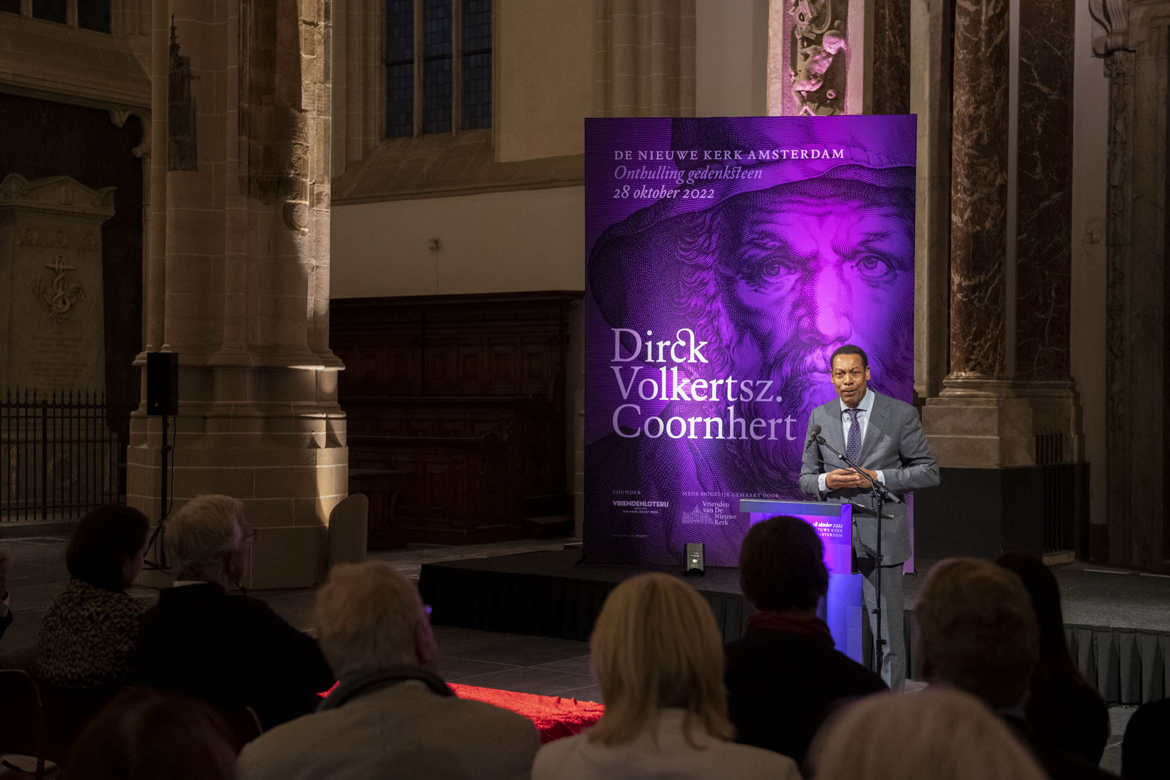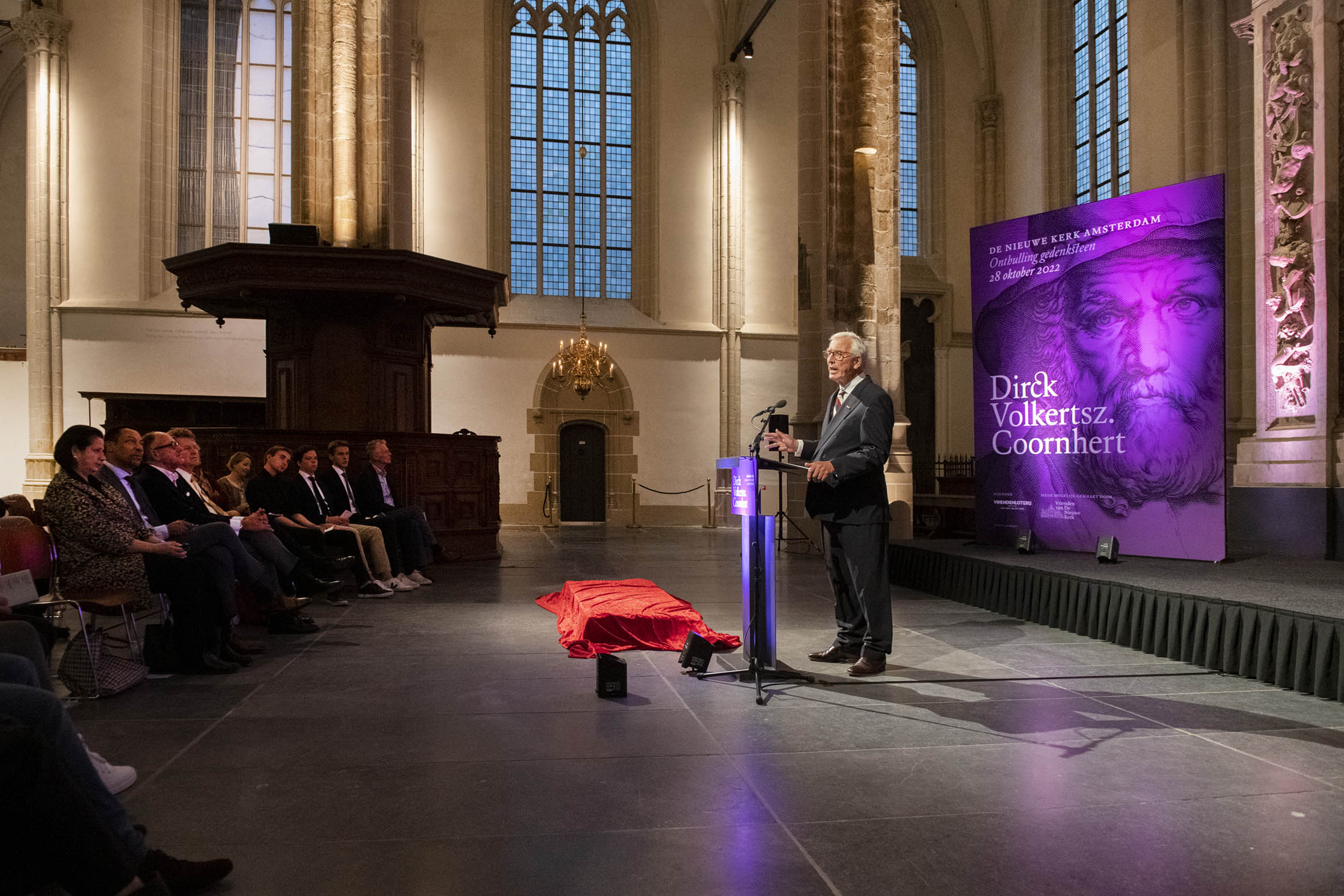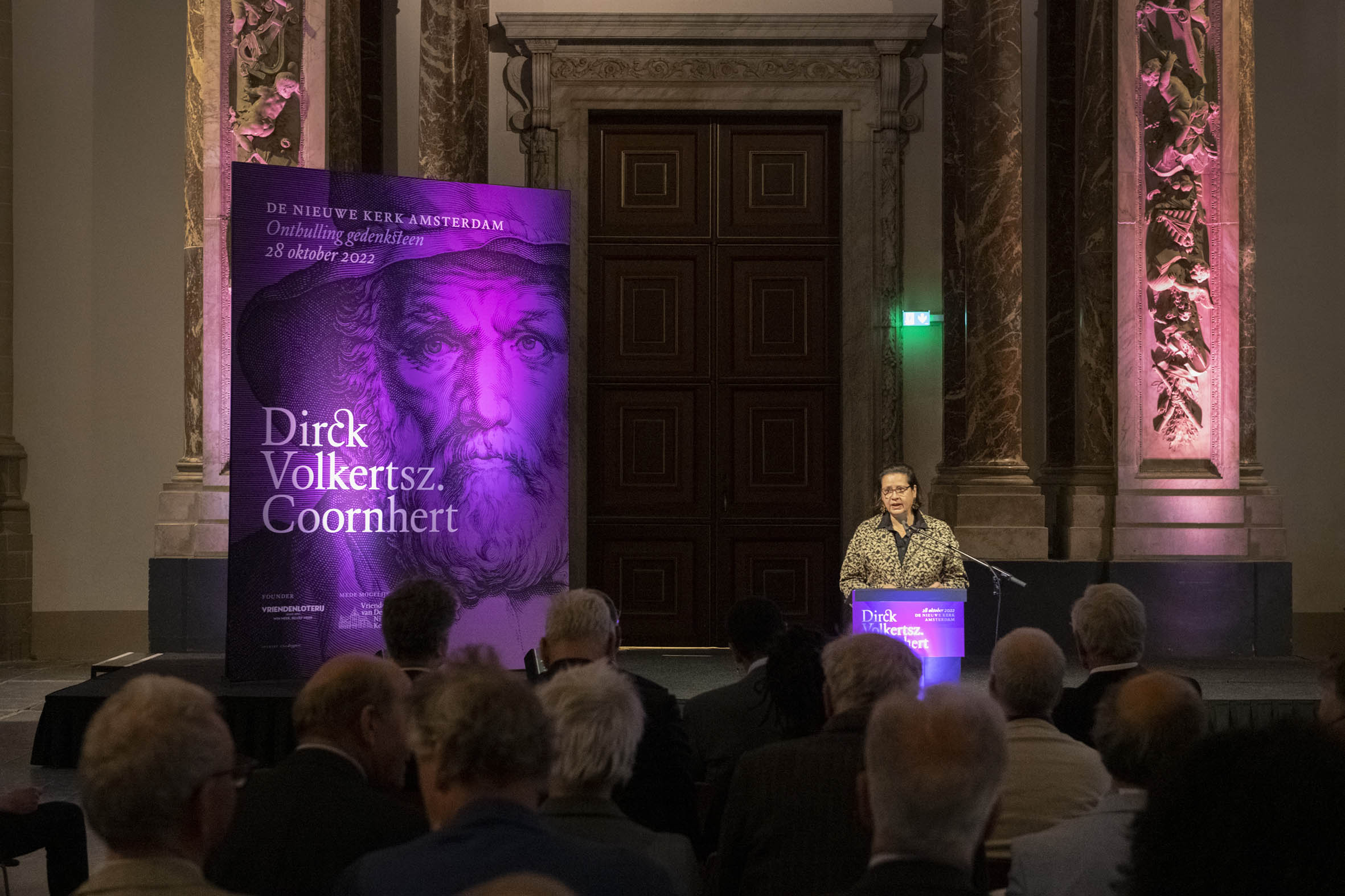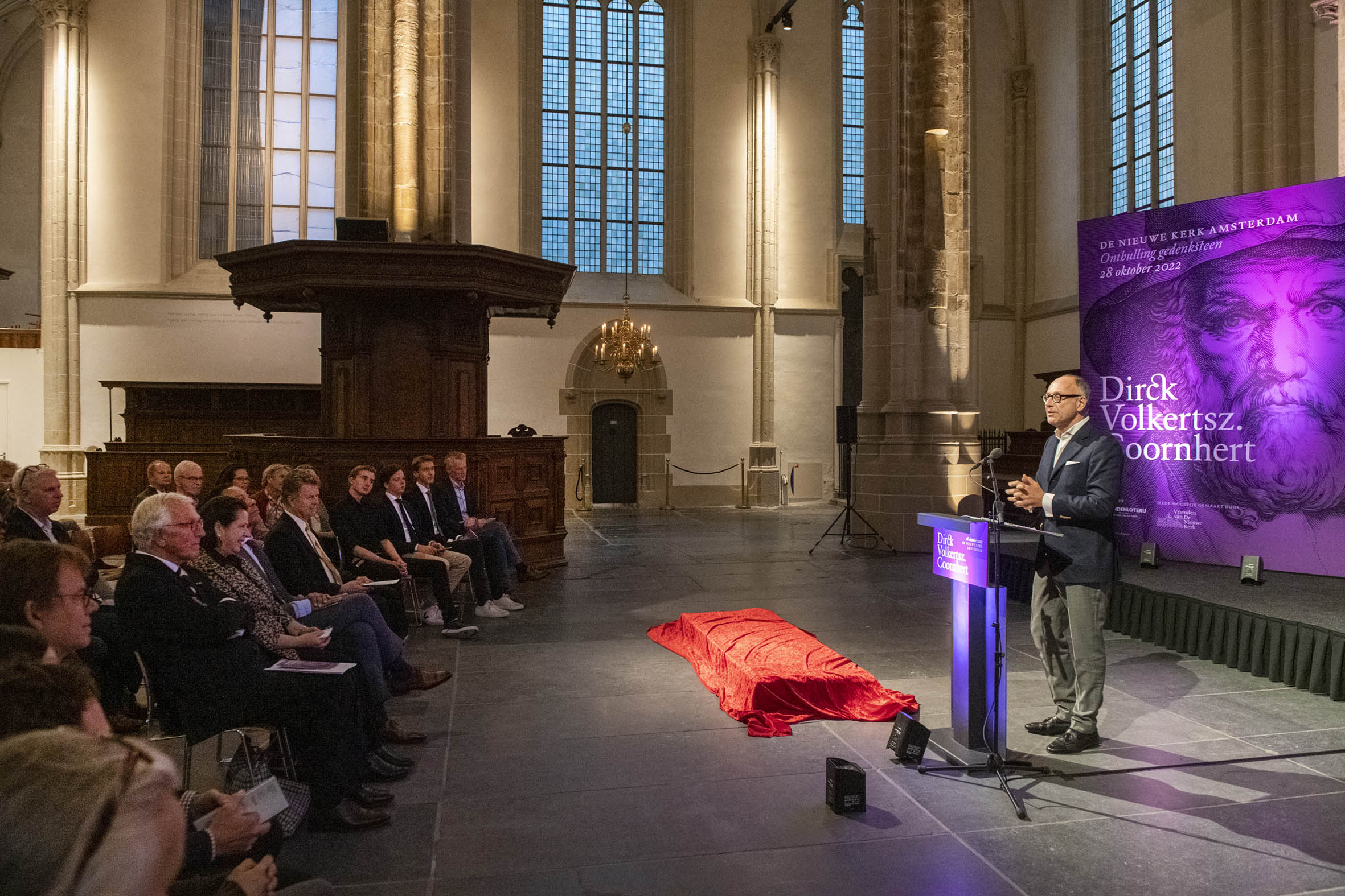 Tekenen van het gastenboek door Boris Dittrich (1), Wim Cerutti (2) en Franc Weerwind (3). Welkom door Annabelle Birnie, directeur Nieuwe Kerk (4-7). Inleiding door Paul Mosterd, adjunct-directeur Nieuwe Kerk (8-9). Voordracht door Wim Cerutti (10-13), Boris Dittrich (14-15) en Franc Weerwind (16-18). Onthulling van de Coornhert-gedenksteen door Dittrich, Cerutti en Weerwind met drie leerlingen van het Coornhert Lyceum (19-22). Drankje na afloop (23-32) met o.a. Willemijn Cerutti en Jan Dirkzager (27), Albert Patijn, Machteld en Willem Veenhoven, Joan Patijn (28). Martin Sommer, Wim Cerutti, Louise van Zetten, Jan Spoelder (29). Afscheid van Coornhert (32).