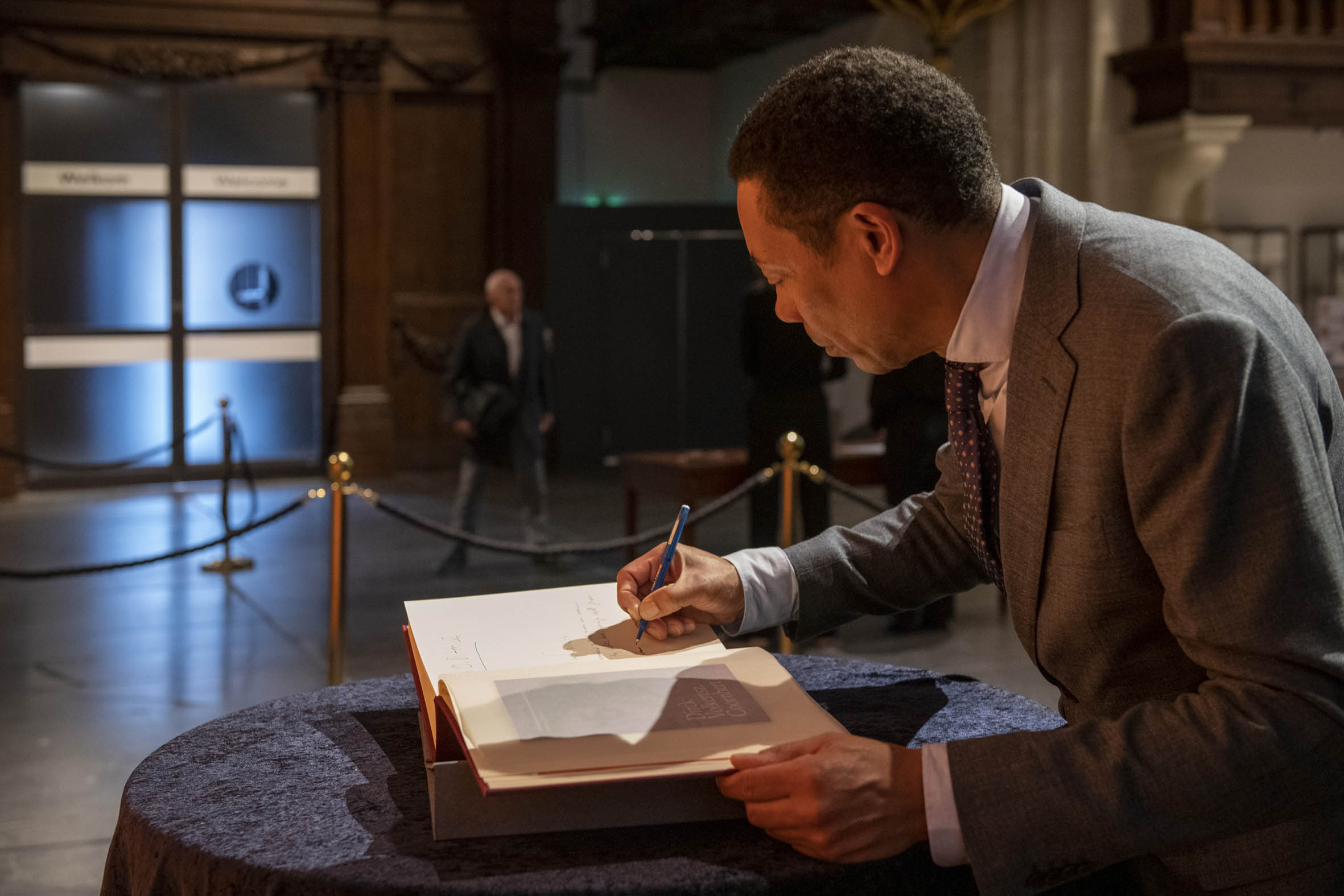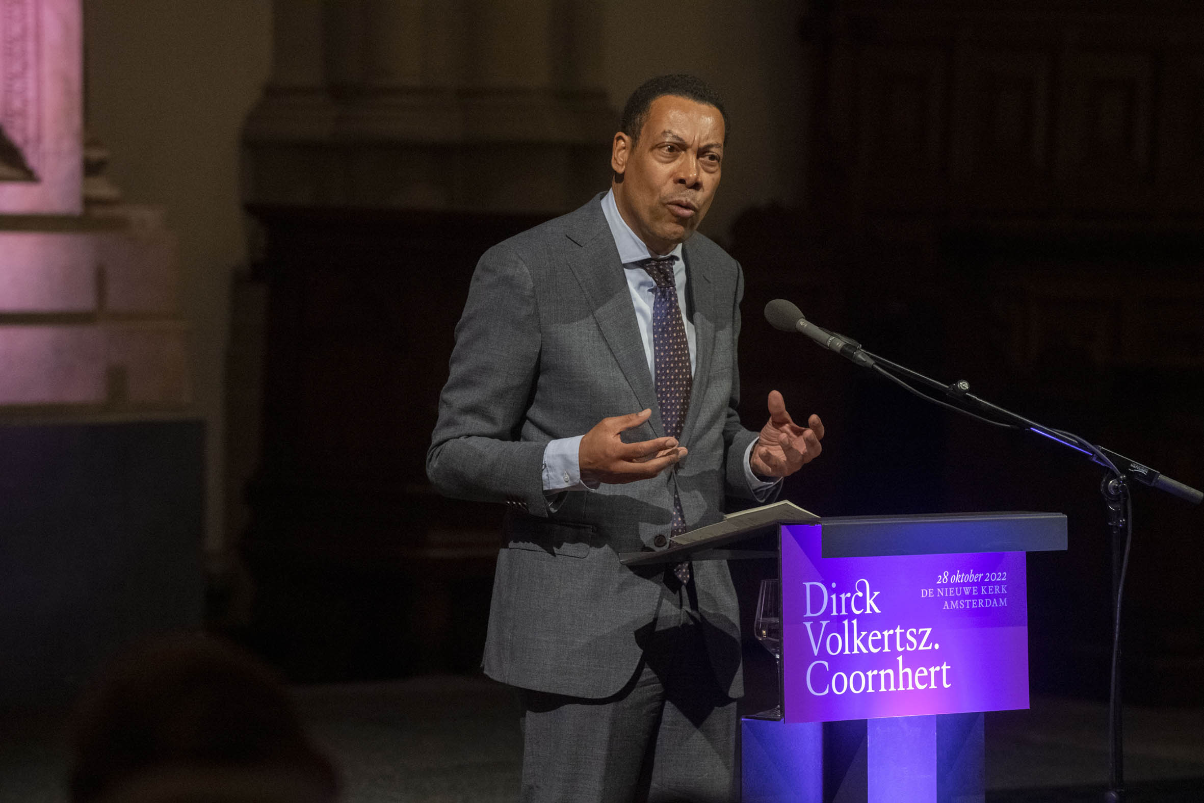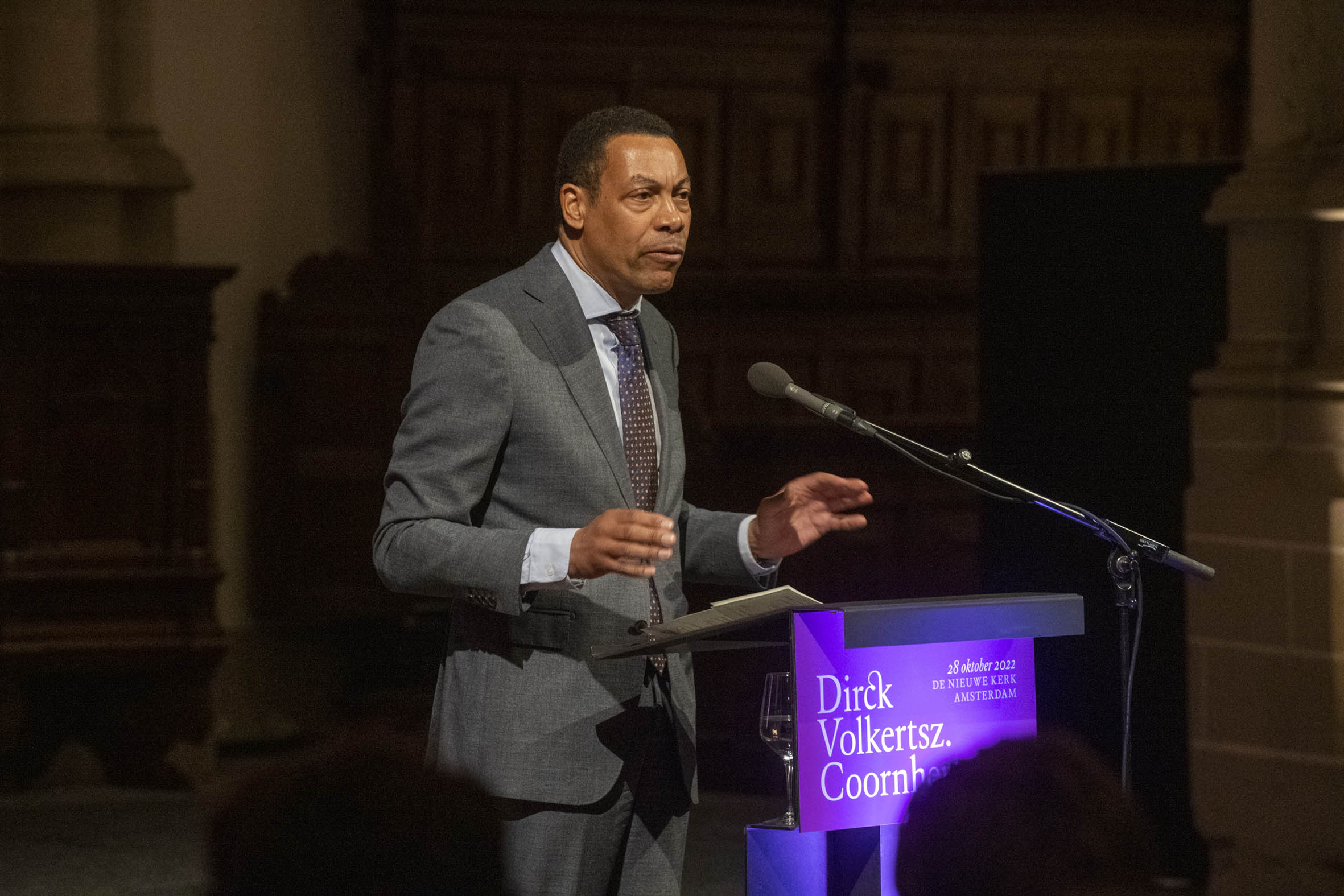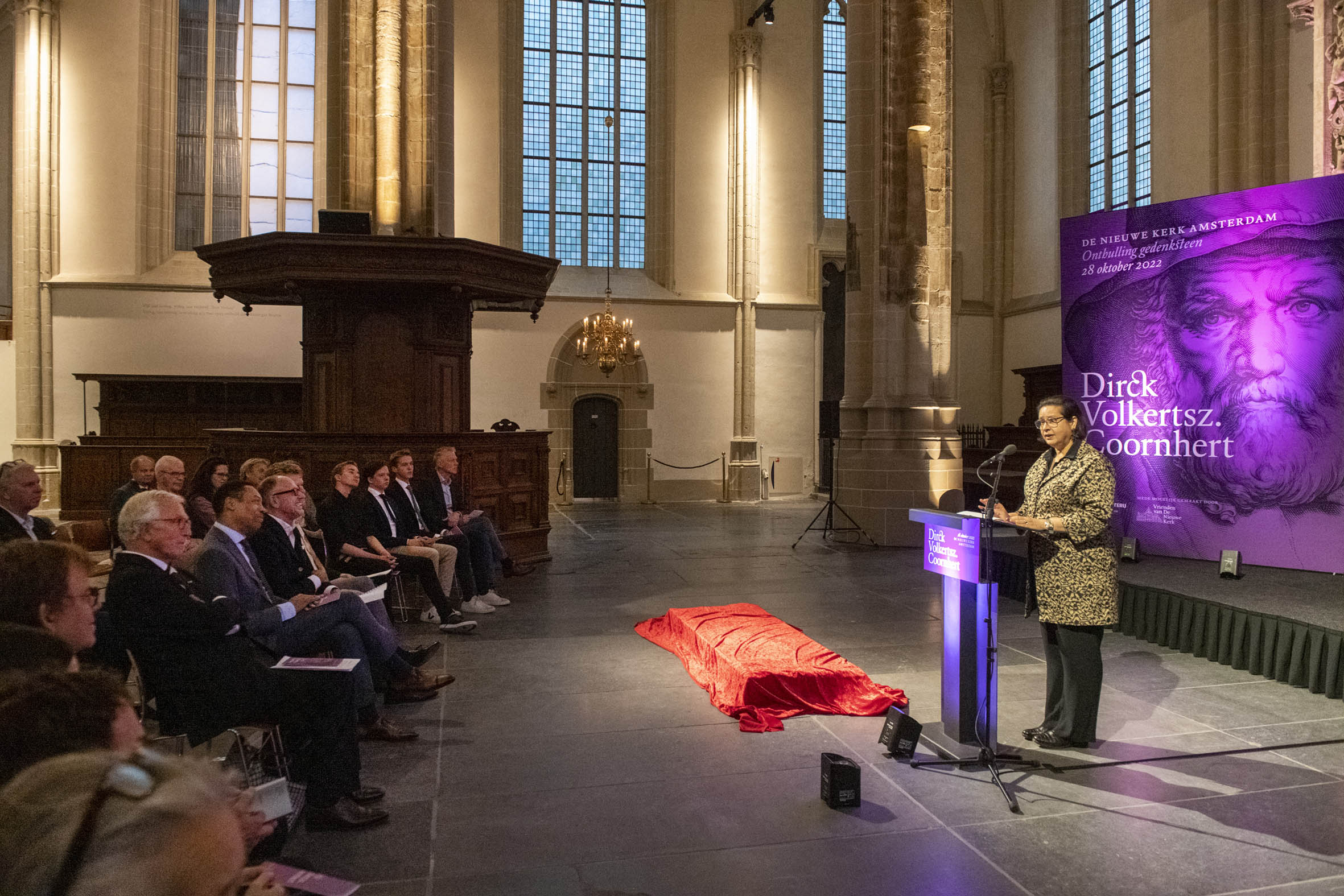 Tekenen van het gastenboek door Boris Dittrich (1), Wim Cerutti (2) en Franc Weerwind (3). Welkom door Annabelle Birnie, directeur Nieuwe Kerk (4-7). Inleiding door Paul Mosterd, adjunct-directeur Nieuwe Kerk (8-9). Voordracht door Wim Cerutti (10-13), Boris Dittrich (14-15) en Franc Weerwind (16-18). Onthulling van de Coornhert-gedenksteen door Dittrich, Cerutti en Weerwind met drie leerlingen van het Coornhert Lyceum (19-22). Drankje na afloop (23-32) met o.a. Willemijn Cerutti en Jan Dirkzager (27), Albert Patijn, Machteld en Willem Veenhoven, Joan Patijn (28). Martin Sommer, Wim Cerutti, Louise van Zetten, Jan Spoelder (29). Afscheid van Coornhert (32).