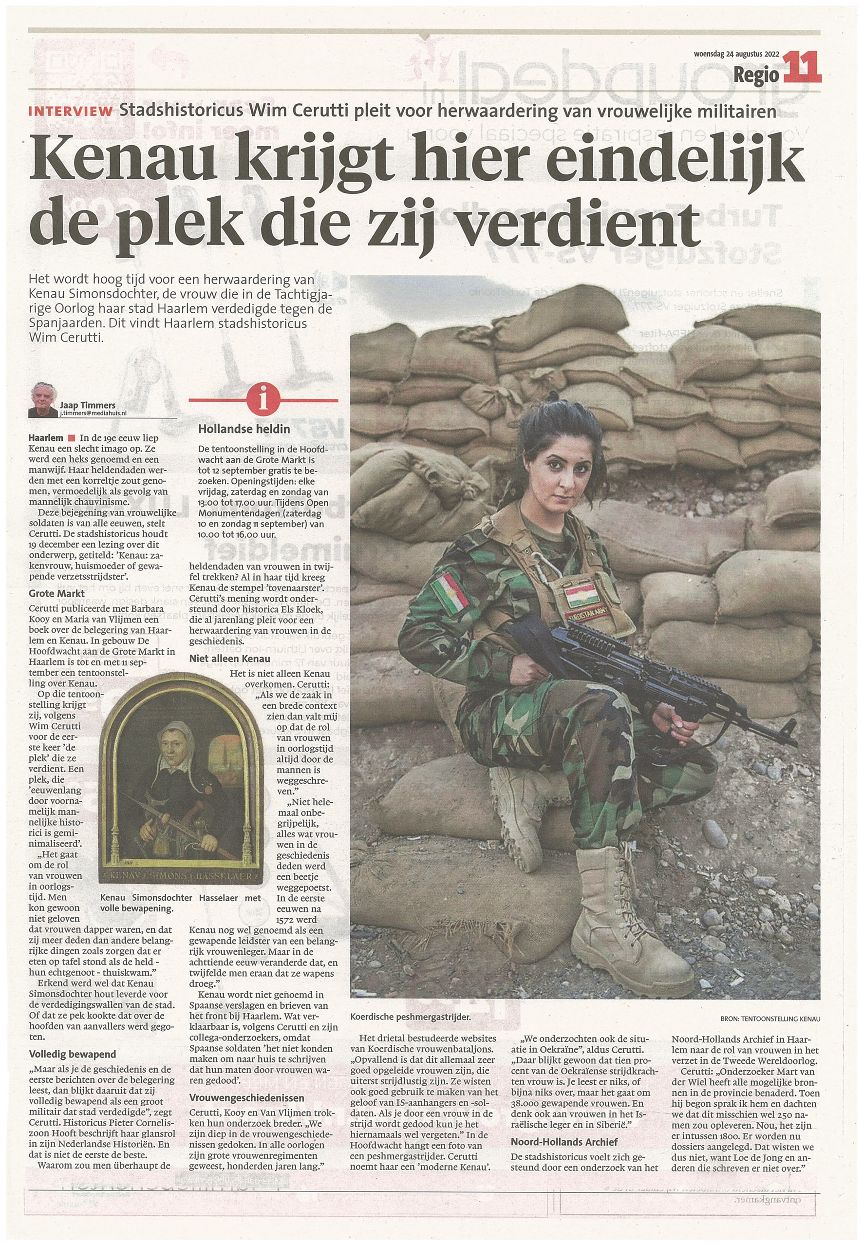 Naar huidige inzichten heeft Kenau een niet onbelangrijke rol heeft gespeeld tijdens het beleg. Het was hoog tijd voor een herwaardering. Op de tentoonstelling werd de zestiende-eeuwse Kenau omgeven door indrukwekkende beelden van vrouwelijke strijders uit de 20ste en 21ste eeuw, onder wie vrouwen die meevechten in het Oekraïense leger. Kenau is geen scheldwoord maar een eretitel, aldus de tentoonstelling. Haarlems Dagblad schreef over deze tentoonstelling: ‘Kenau krijgt hier eindelijk de plek die zij verdient’.