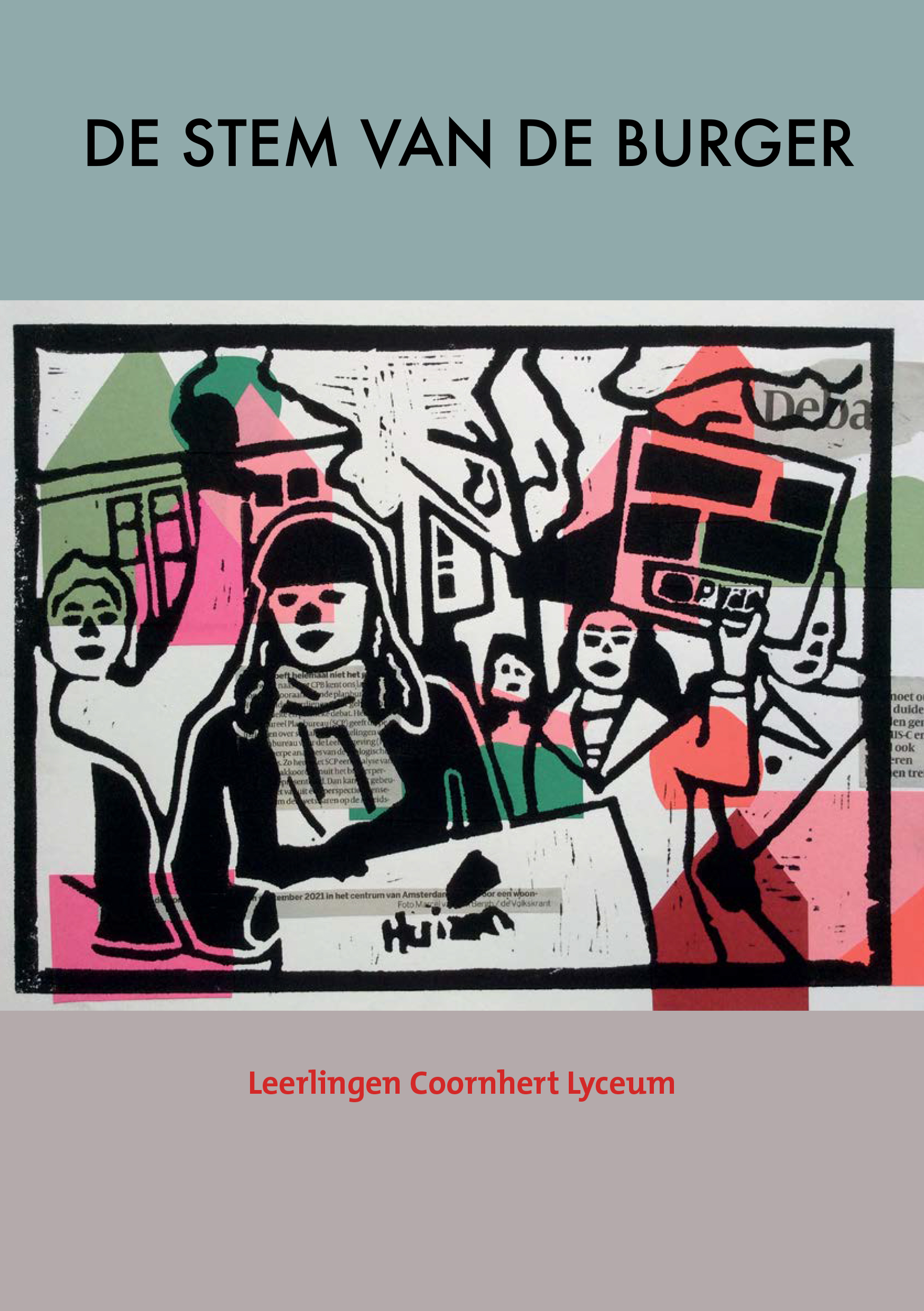 Onder leiding van docent Harm van Ee namen de leerlingen persfoto’s van conflicten, uitsluiting en tolerantie-issues uit onze recente geschiedenis als uitgangspunt voor een serie linosneden. Linoleum snijden is een hoogdruk techniek die aansluit bij het beroep van Coornhert: graficus. Voorbeelden van conflicten die door de leerlingen zijn uitgebeeld zijn: Black Lives Matter, vrouwenemancipatie, Arabische opstand, Coronademonstraties, Chinese onderdrukking en de wooncrisis. De collectie linoleumsneden geeft een krachtig tijdsbeeld en laat zien dat jonge leerlingen hedendaagse problemen op een creatieve wijze kunnen verbeelden. Harm van Ee: ‘Leerlingen worden beïnvloed door digitale media en zijn snel geneigd aansluiting te zoeken bij een digitale groep op basis van vooroordelen. De relevantie van Coornherts ideeën ligt in het heden en bij de mentale ontwikkeling van onze leerlingen.’